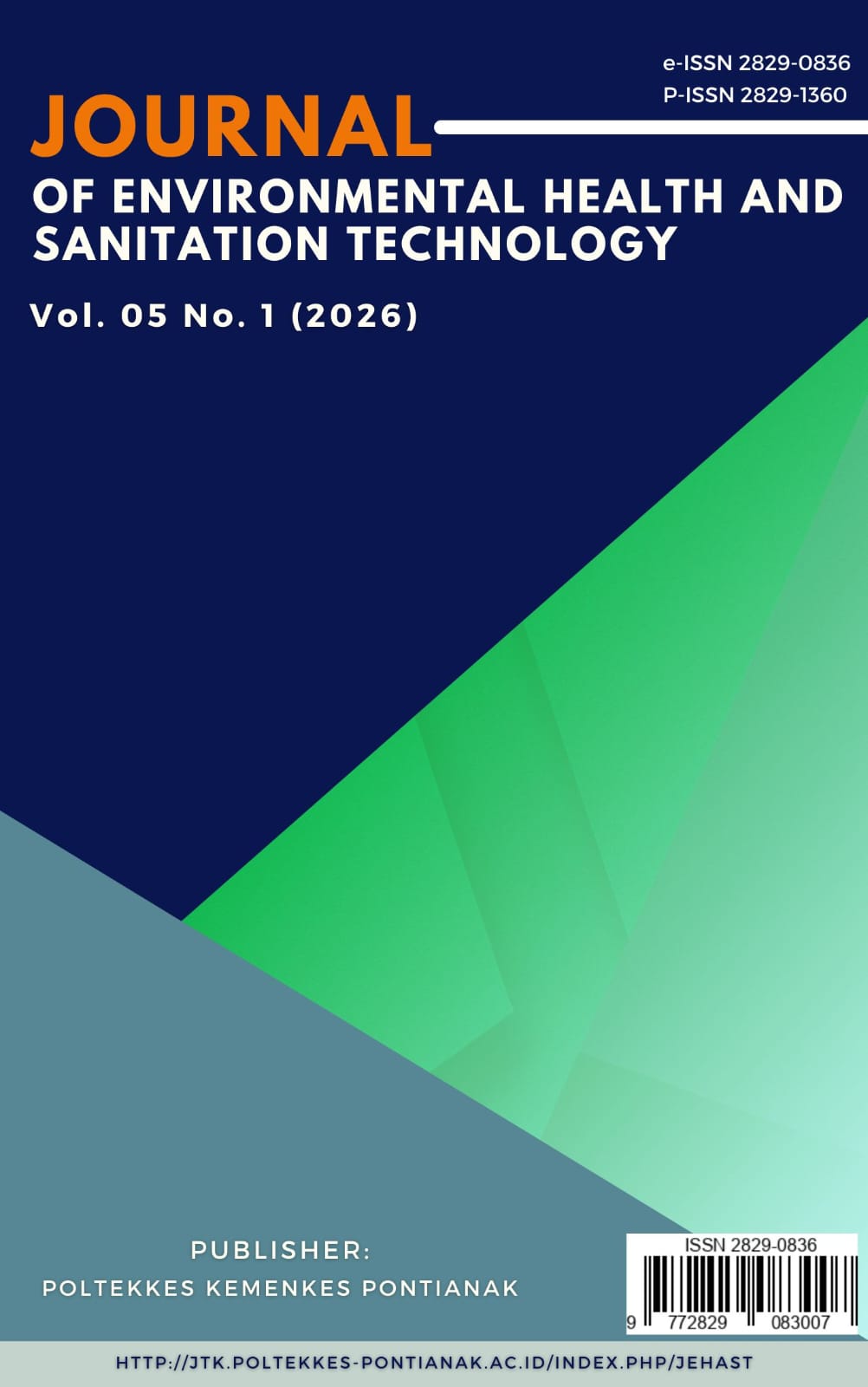 Journal of Environmental Health and Sanitation Technology is a research journal containing research results in the field of Water Sanitation, Land Sanitation, Waste Management, Vectors, and Pests Control, Food and Beverage Sanitation, Occupational Health and Safety, and Environmental Health Epidemiology and other related disciplines published by the Department of Environmental Health Poltekkes Kemenkes Pontianak. This journal was first published in 2022 with e-ISSN 2829-0836. The frequency of issue every 6 months is march and September and is already indexed by Google Scholar.